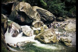平乐古镇漂流项目是2010年5月1日兴起的水上旅游项目,起点是位于古镇西向的 金华山倒石桥,经金鸡谷,最后抵达古镇上游的风情园下方,全